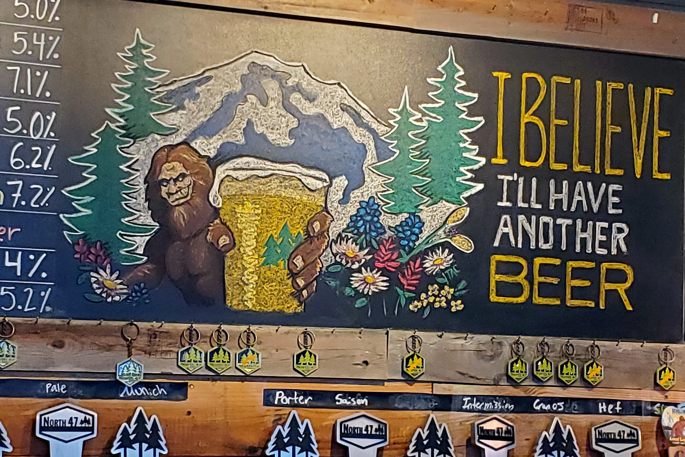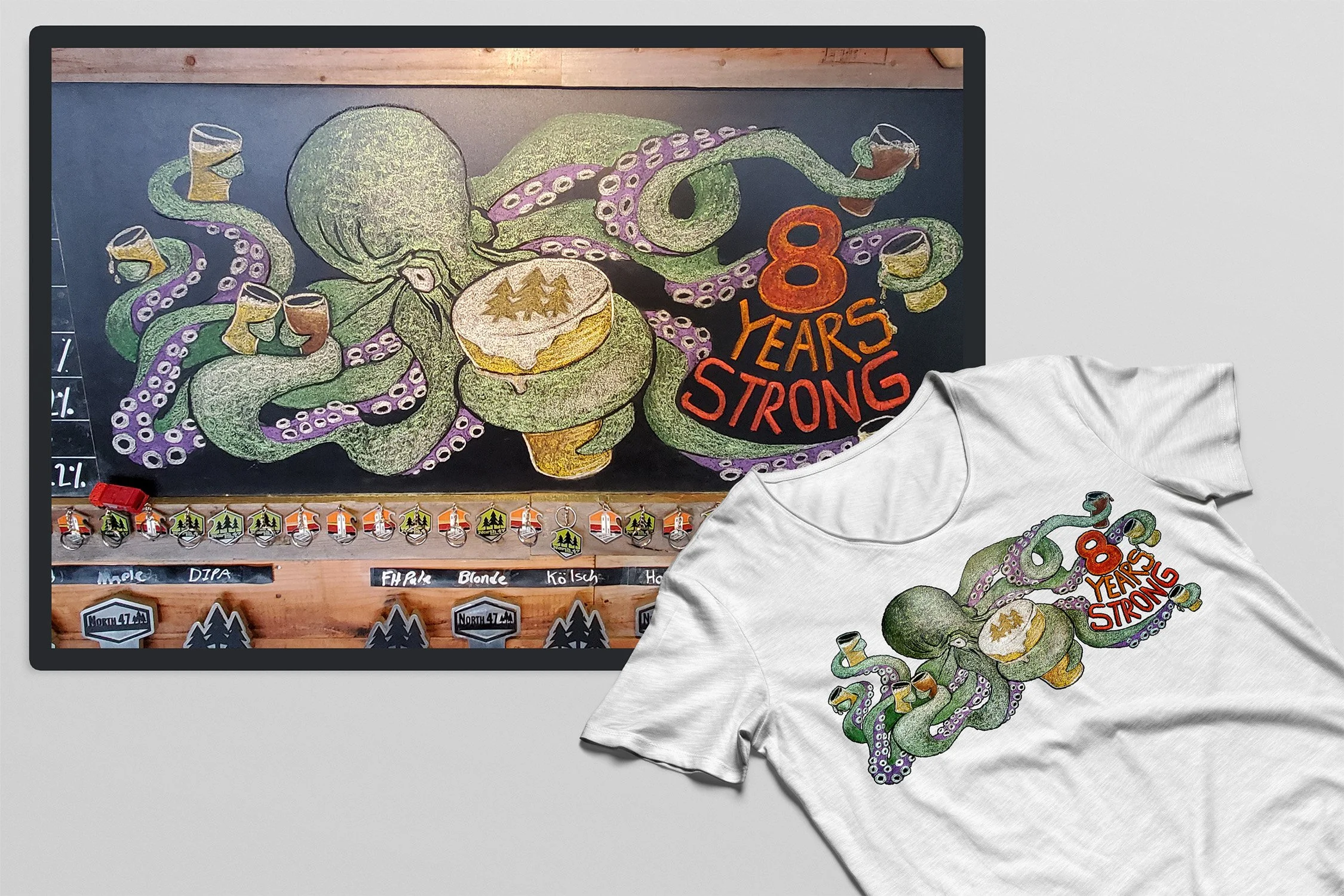Project: North 47 Brewing Co. commissions each year to design new chalk art for their anniversary parties and custom swag.