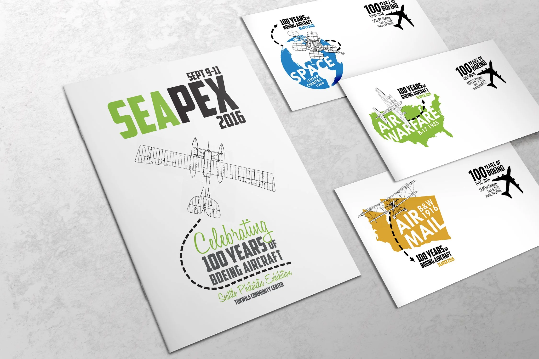 Project: The Seattle Philatelic Exhibition (SEAPEX) was a nationally recognized stamp show that commissioned collectible cachet designs for each day of the event, based on a local anniversary.