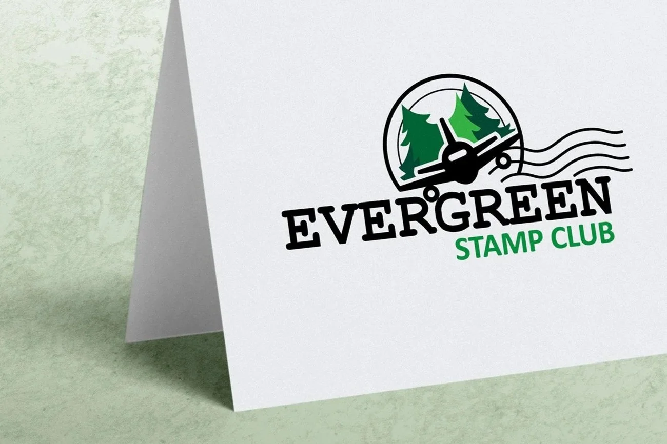 About: The Evergreen Stamp Club is a chapter of the American Philatelic Society. Formerly the Boeing Employees Stamp Club, I updated their logo to include a nod to aviation.